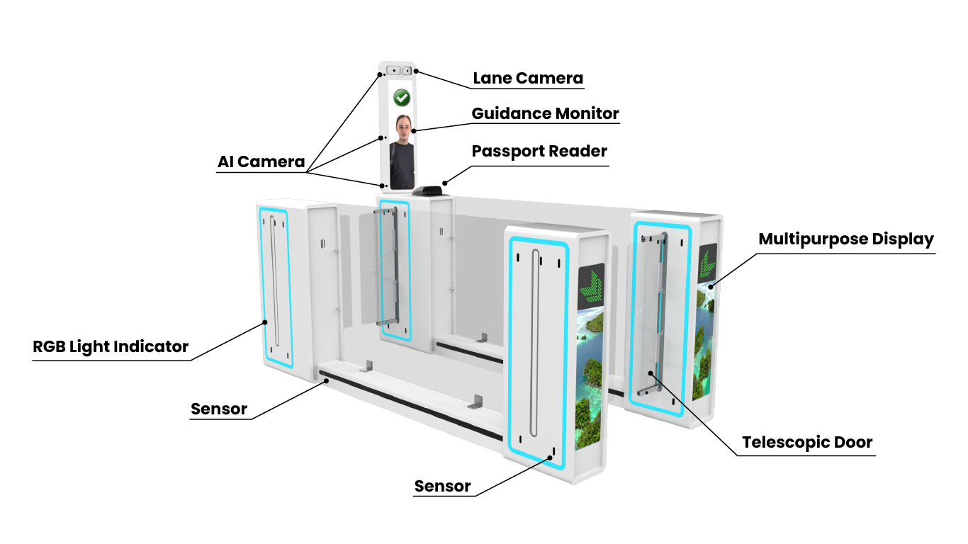 Autogate Immigration Clearance (AIC) is a cutting-edge control system solution for airports, borders, and international ports, born from Indonesian innovation. It addresses the critical need for efficiency, accuracy, and reliability in immigration processes. Leveraging the power of Artificial Intelligence (AI), AIC streamlines immigration clearance, ensuring seamless passenger flow without compromising security. Its integrated access control system, featuring a mantrap mechanism, ensures that only one person enters at a time, thereby eliminating unauthorized crossings.